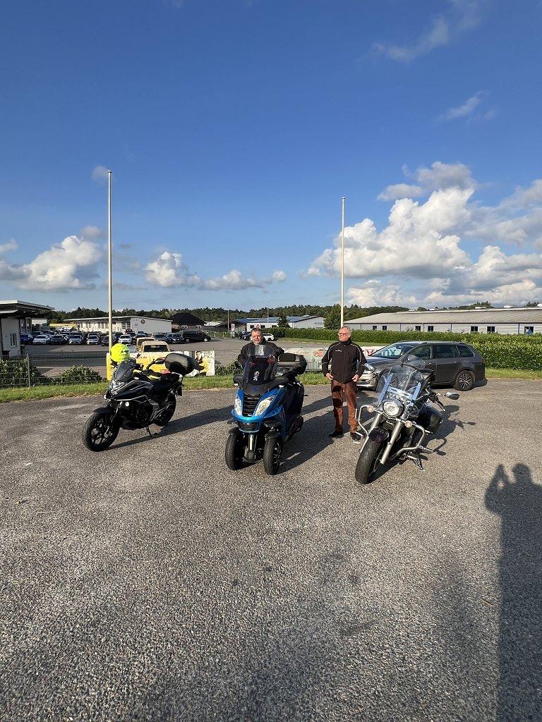 mit 2 mopeds. eine hat heute morgen ihre neue maschine abgeholt.